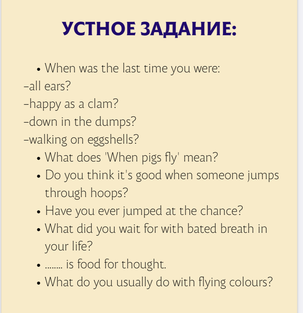 Задания для устной практики фраз